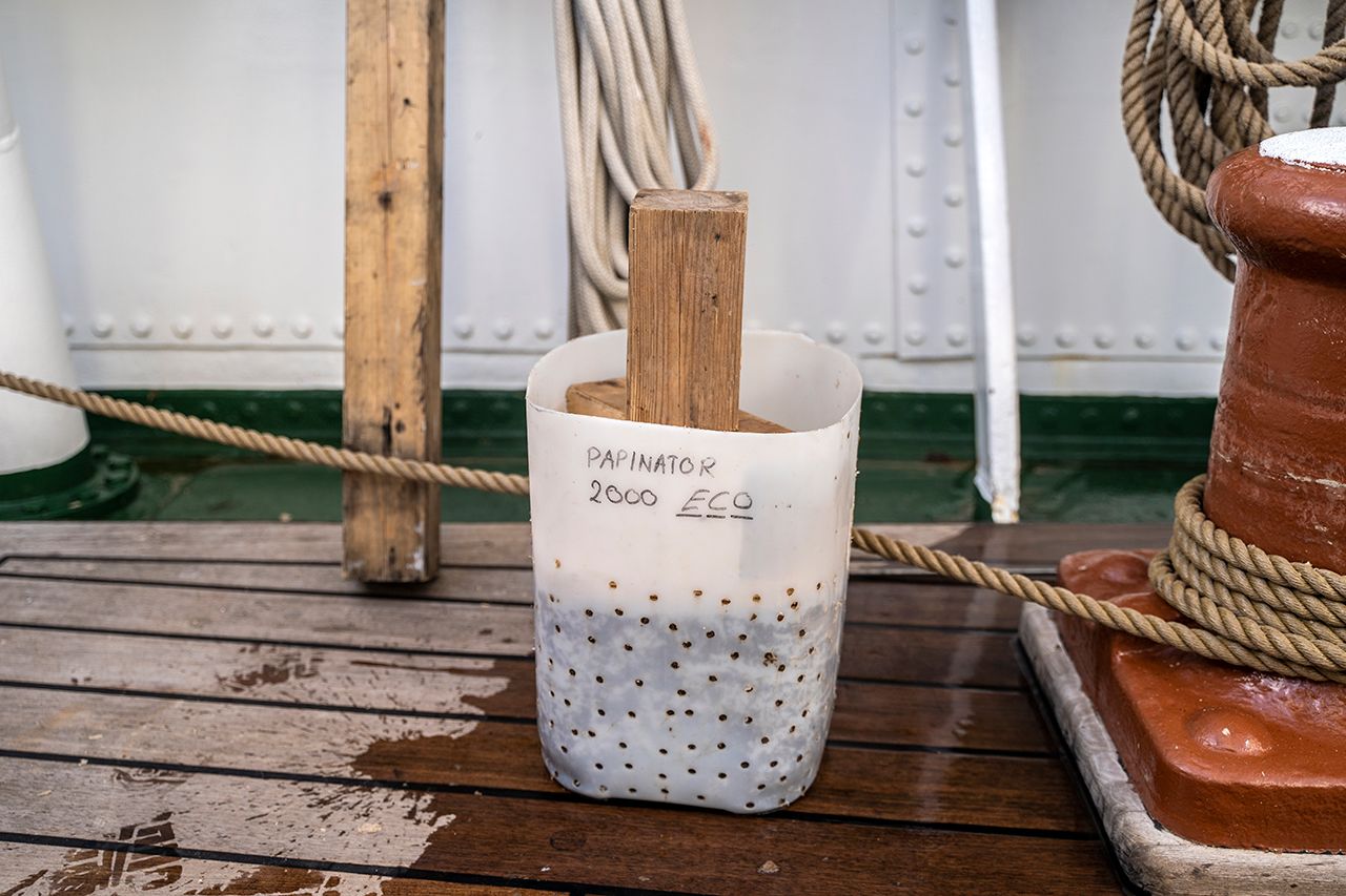 - I compress the cardboard to decrease the volume. It makes it easier to deliver rubbish ashore. Instead of having eight cubic meters of cardboard boxes, we end up with 200 litres, says Jensen.